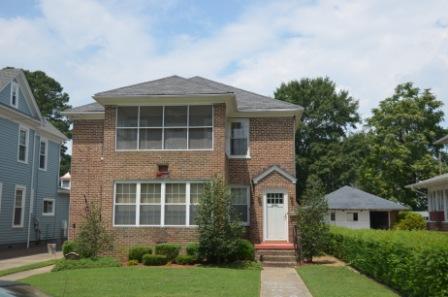Although many years ago I designed an addition and remodeling of a farmhouse near rural Brookneal, VA., this is my first opportunity after obtaining my Virginia license to design a project in an urban setting in Virginia. I have been engaged by a retired couple in the Tidewater city of Suffolk to design a residential elevator addition to the rear of their two story, c. 1935 duplex, that is located on Linden Avenue in Suffolk’s West End National Register Historic District.Suffolk Duplex (front)